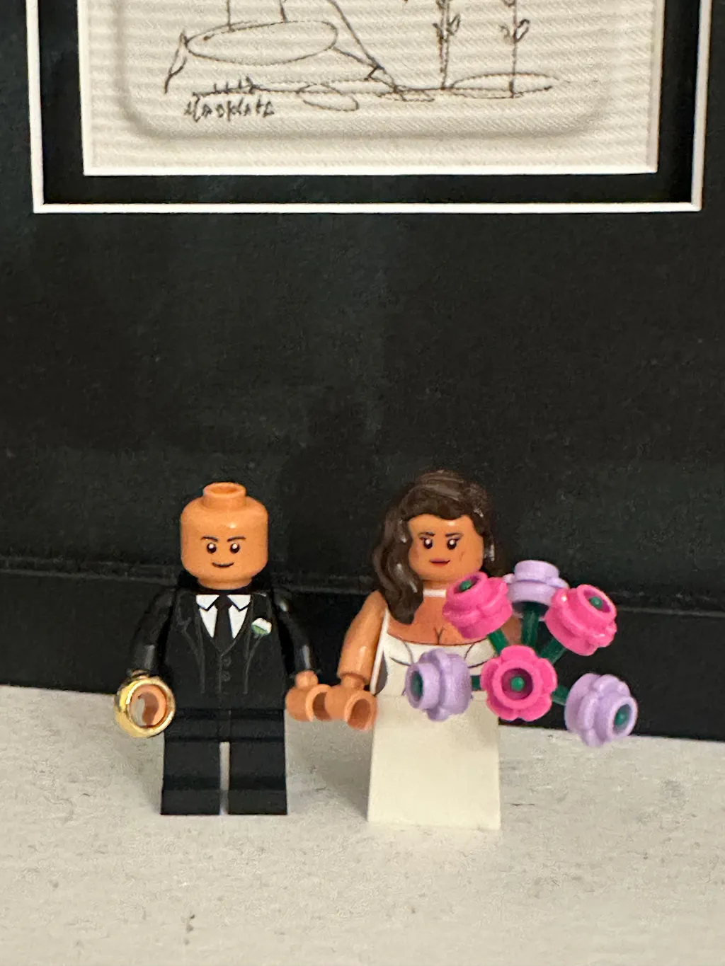 A curated personalised LEGO groom figure for the big day! These figures can be customised by adding different facial, hair and colour options. There is also the option to add a wedding blessing message if it is a gift.